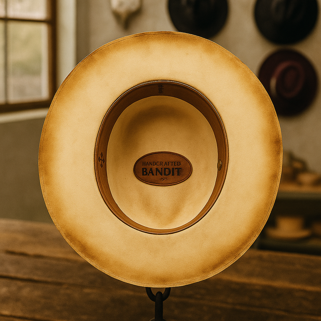 - Design: Beige base; turquoise bead + gold chain band; hand - tooled leather accents