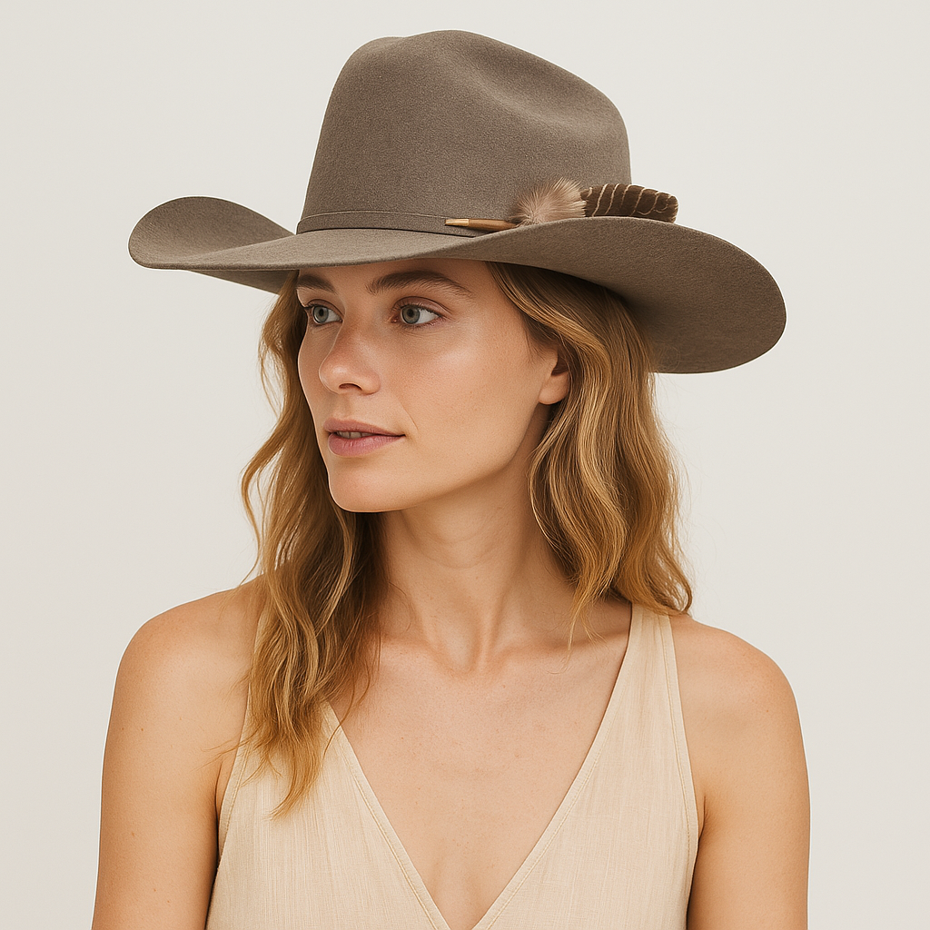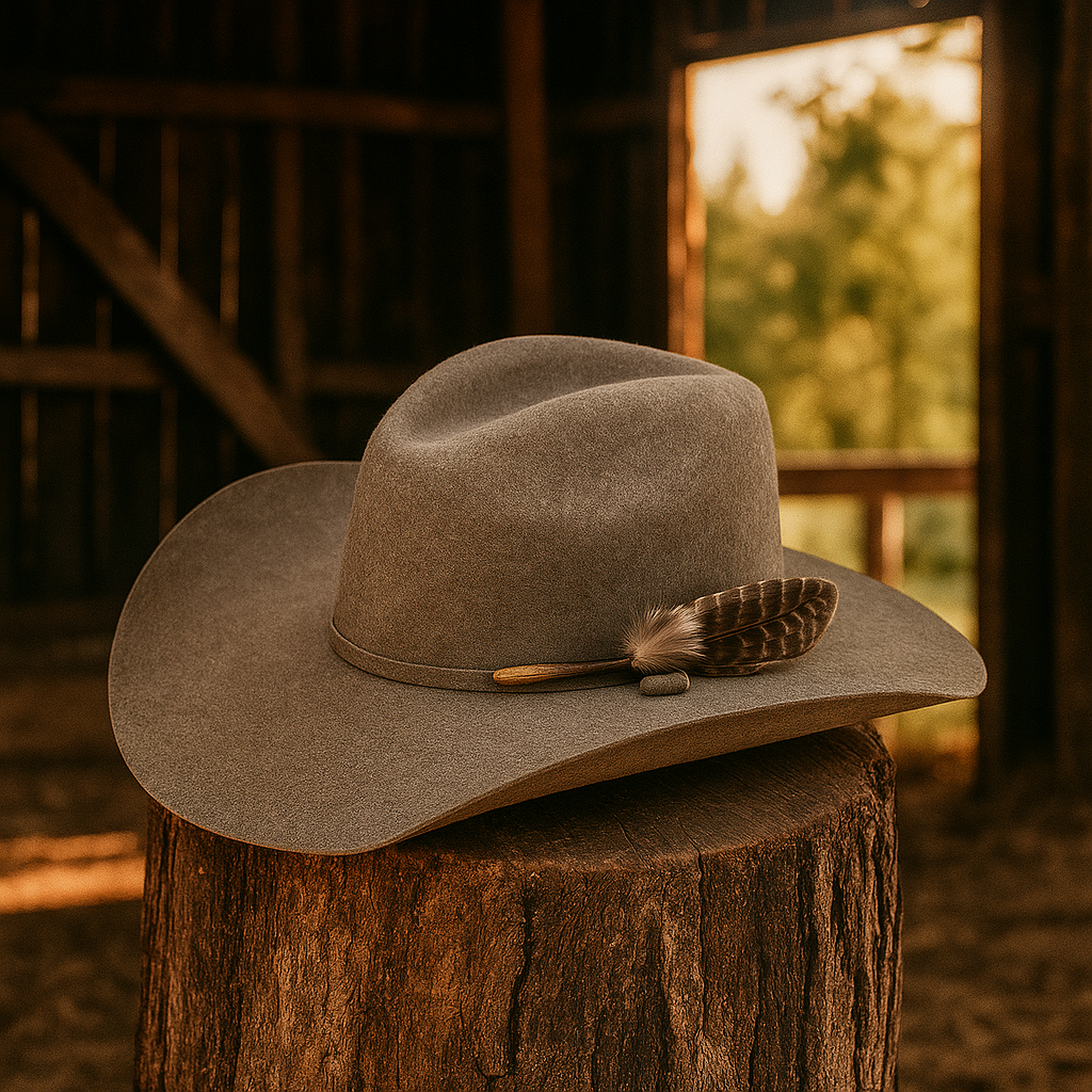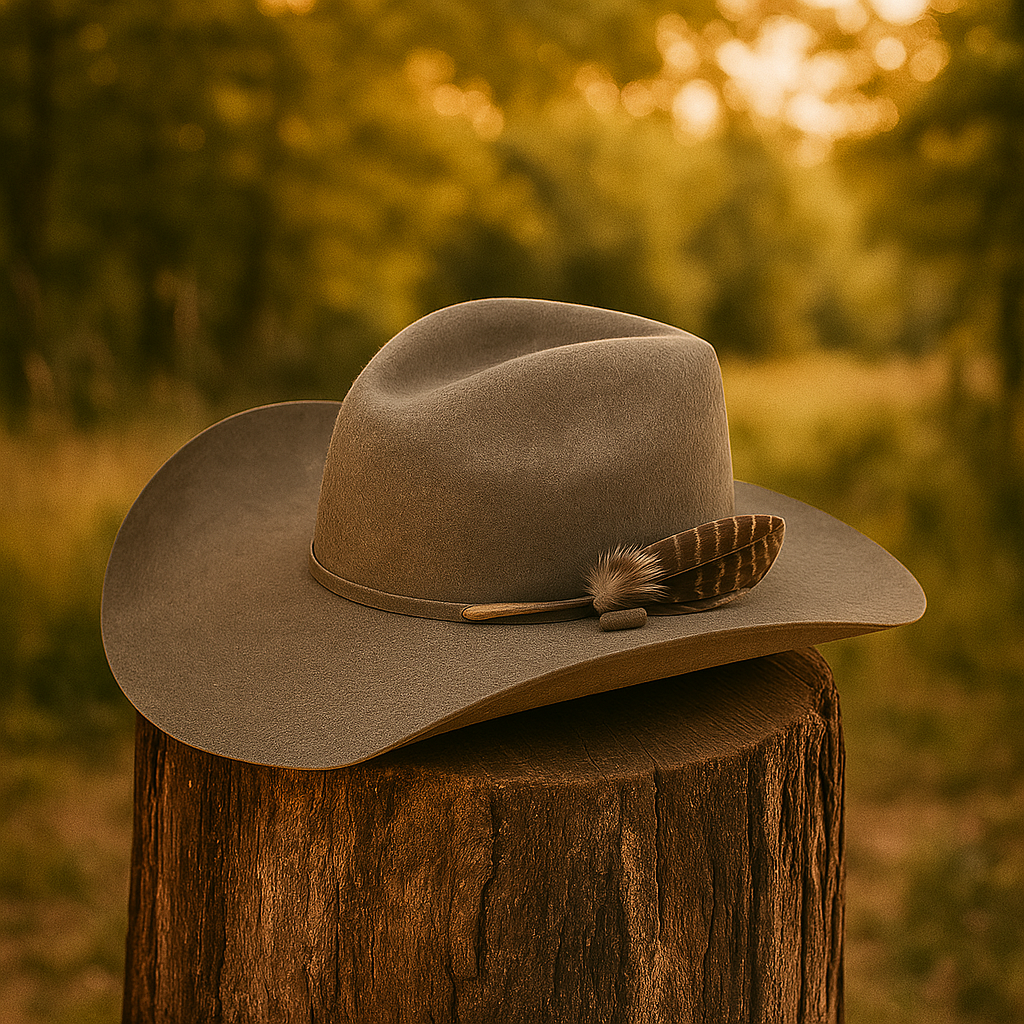 - Accents: Black ribbon-bound edge + J-bow hat band for classic Western flair